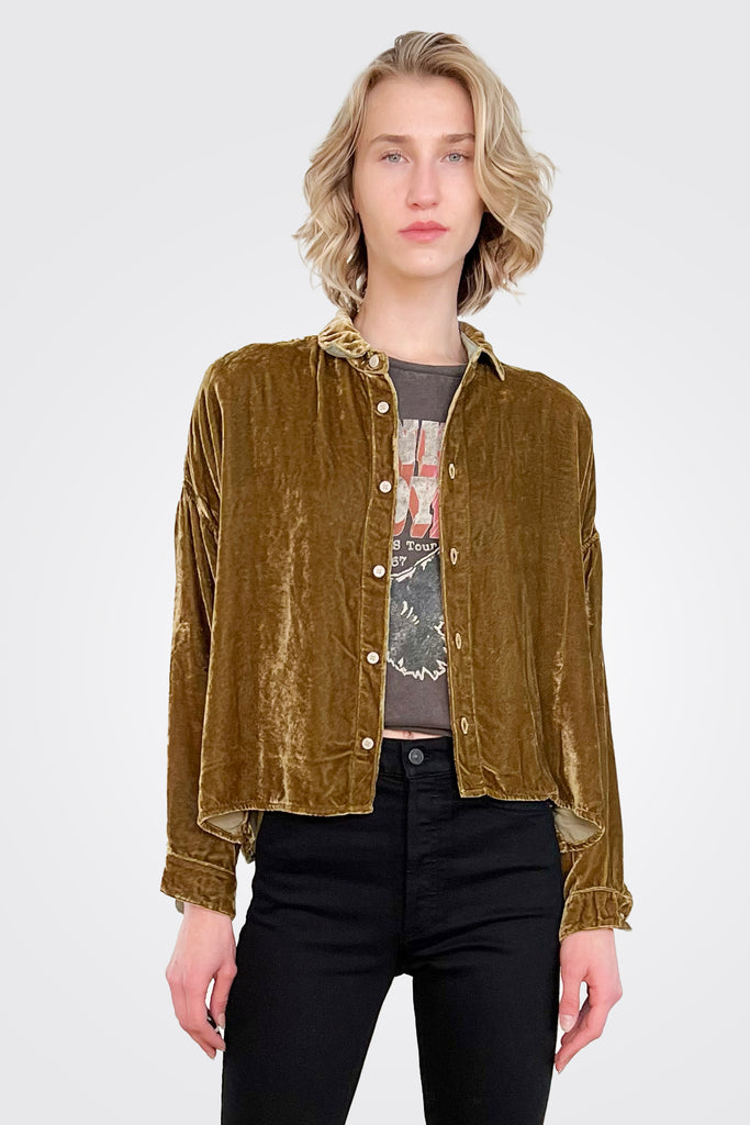 Boxy cropped shirt with a long sleeve and dropped shoulder.
