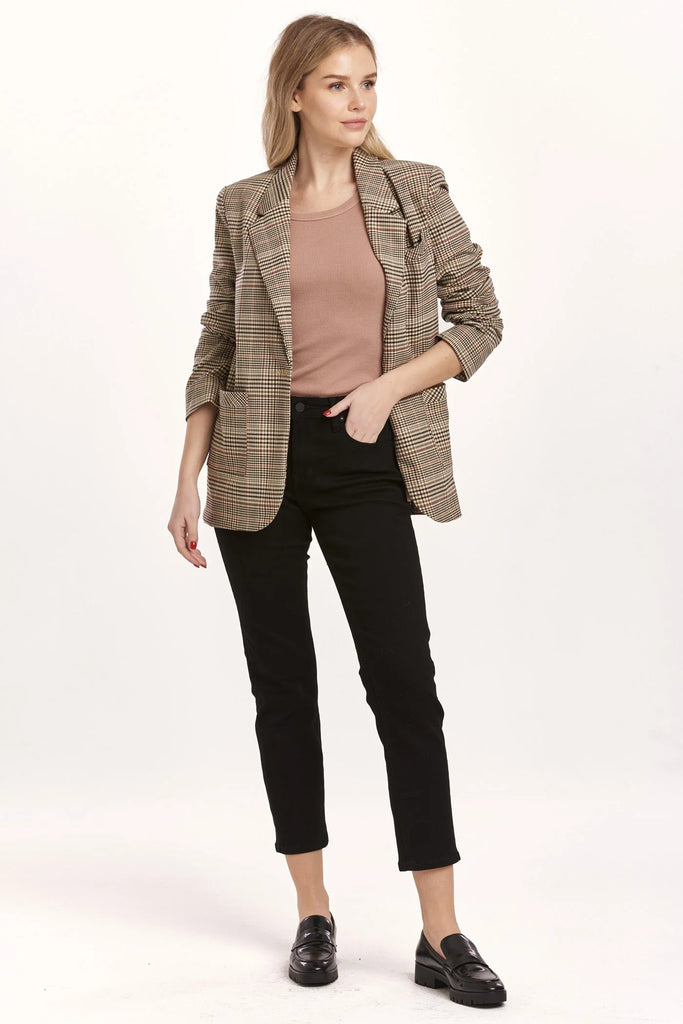 The flap pockets add a touch of functionality to this chic piece. Perfect for both formal and casual occasions, this blazer is a must-have for your wardrobe.