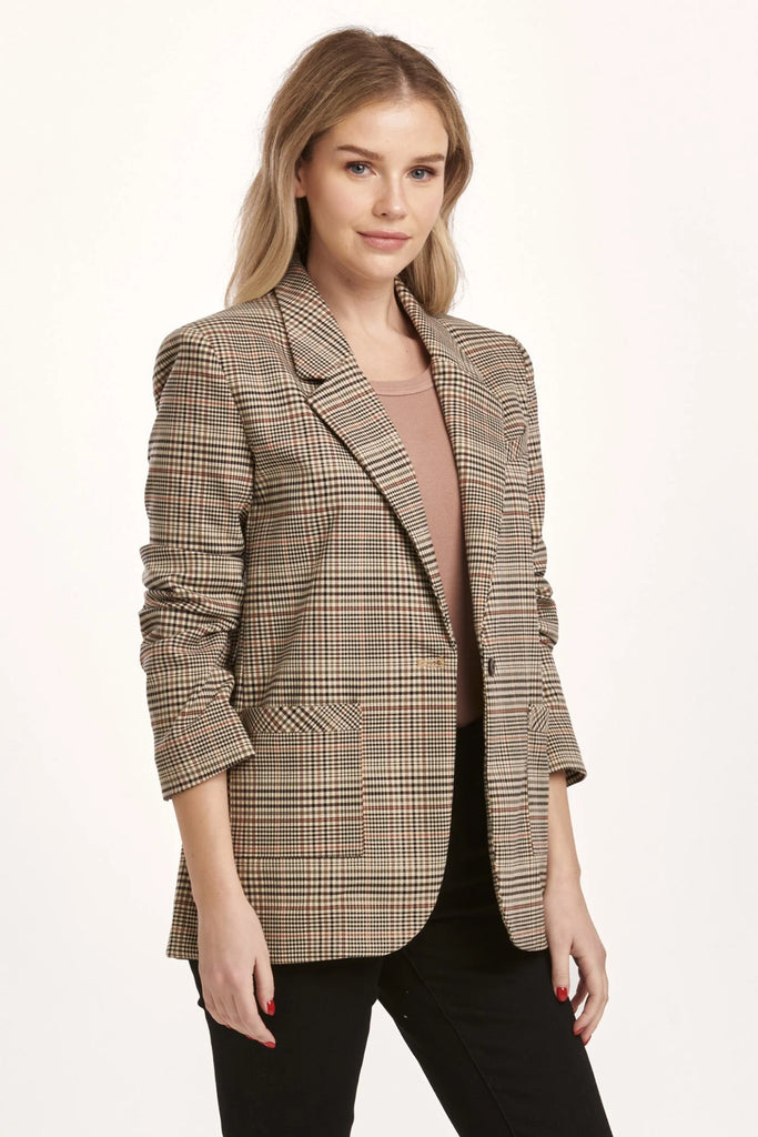 Embrace classic style with this plaid blazer jacket. Designed with long sleeves and a notched lapel, it features button closures, seams, and a center back vent for a sophisticated look.