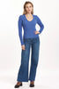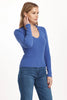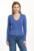 Long sleeve vneck top in rib texture with self neck band. Flexible, plush, ready pairing for any lifestyle, simply "perfect" for all you do! Solid color knit fitted.