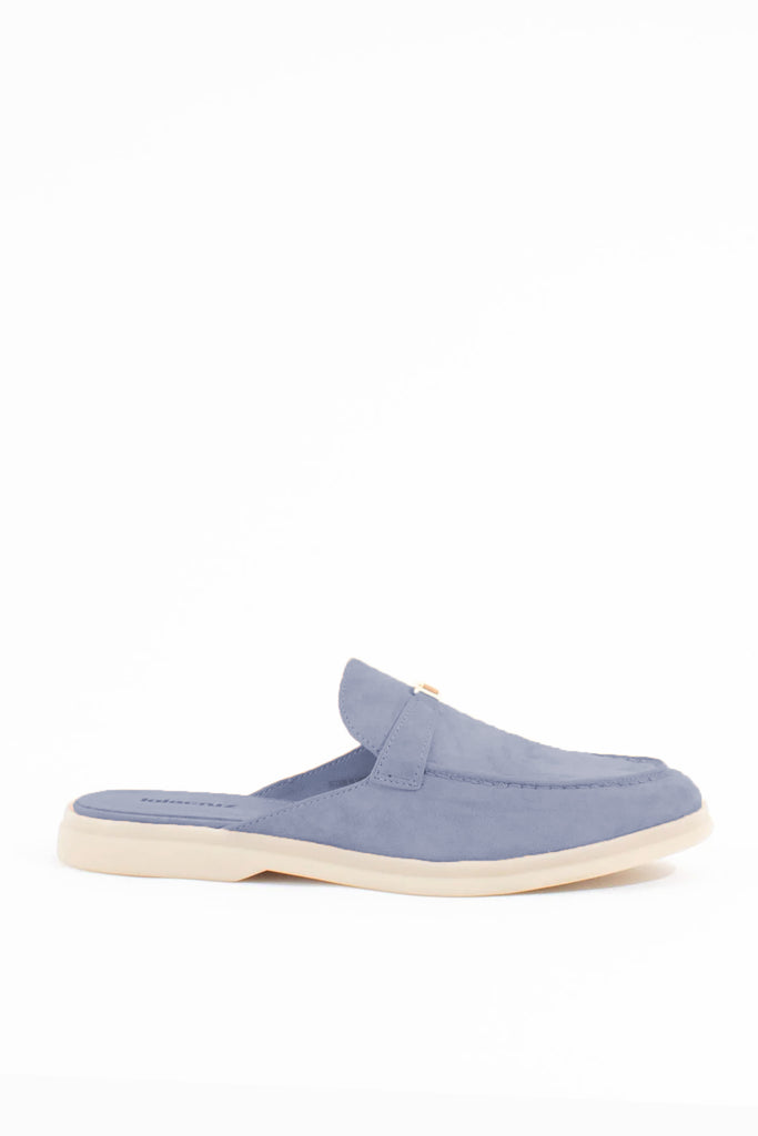 Suede loafers with logo adornment flat of 1,5 cm aprox. low (0.4-1.2 inch) round toe tip