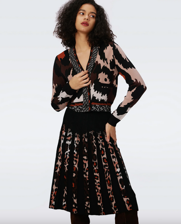 Tribeca Knit Skirt - Knitsun Pleats Camel and Brown