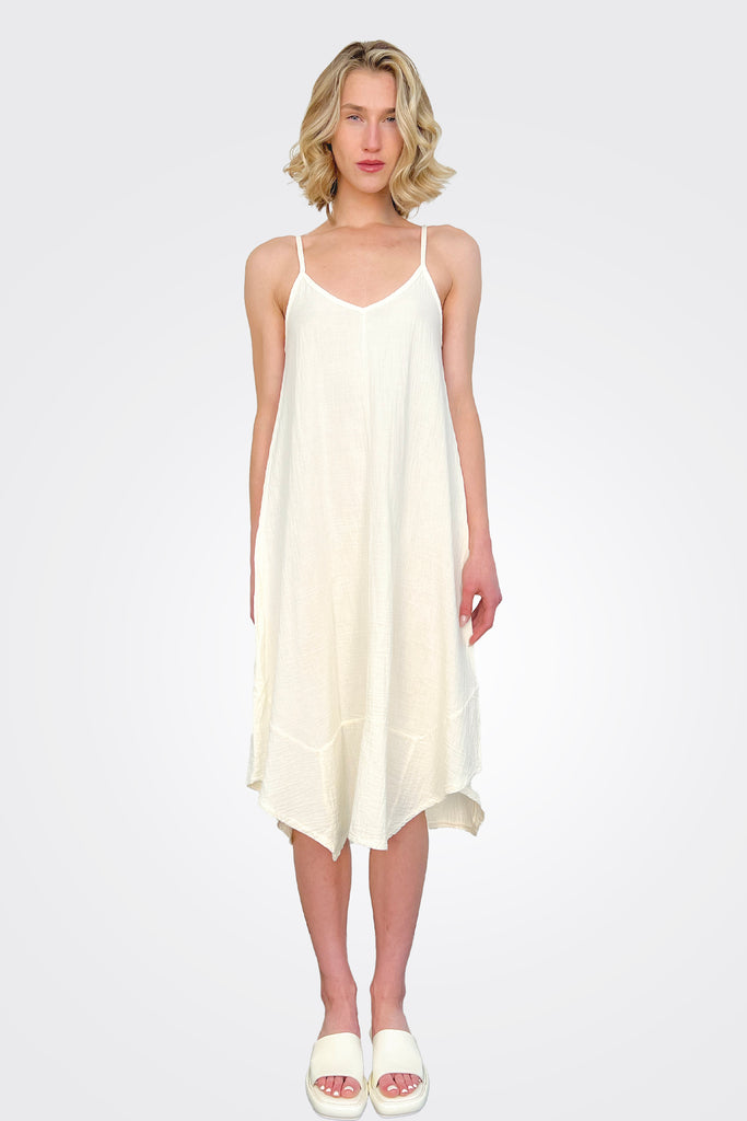 Cami V Neck Midi Handkerchief Dress - Macadamia