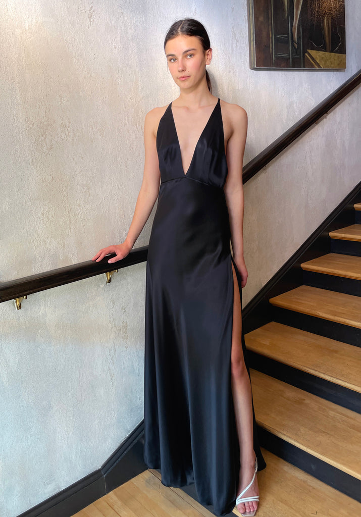 Beautiful Silk Dress with two side slits and criss-cross low back