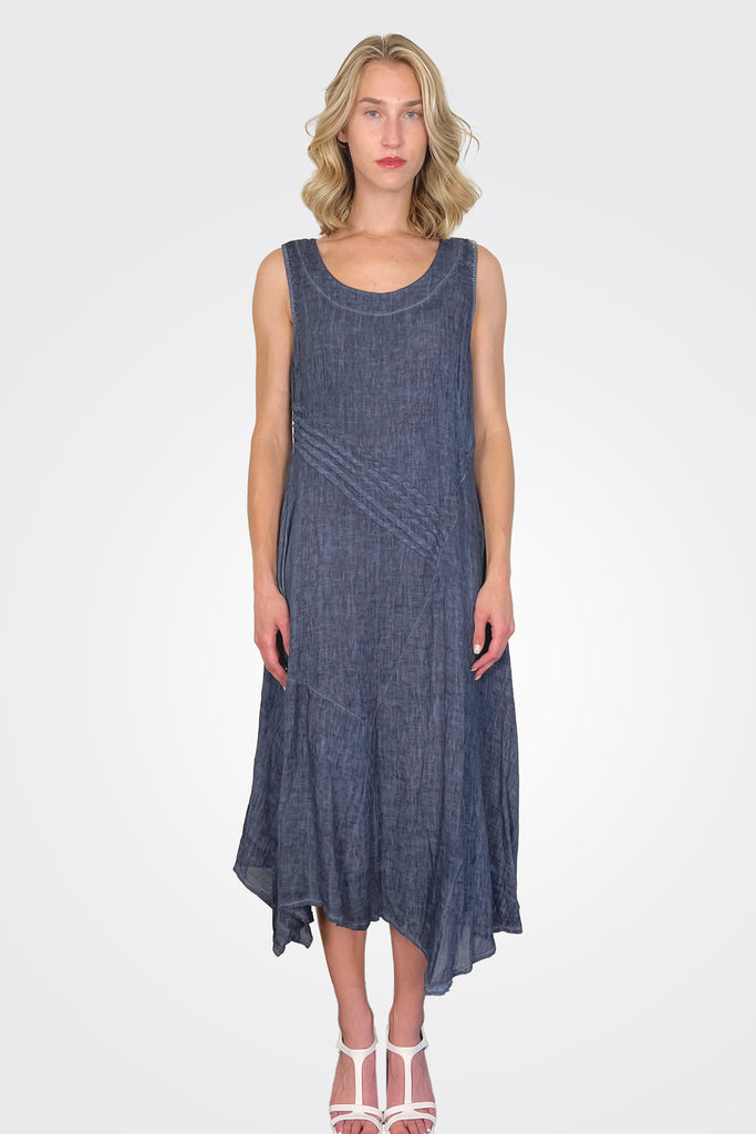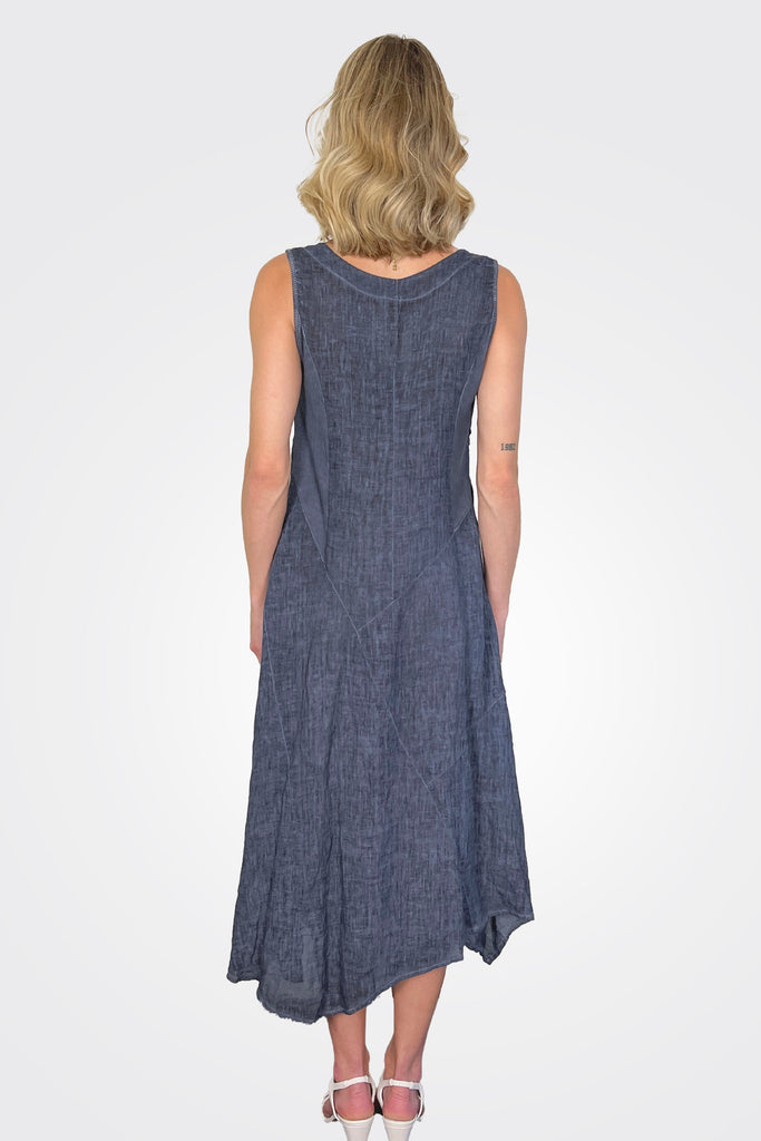 Linen Asym Dress - Indigo Wash
