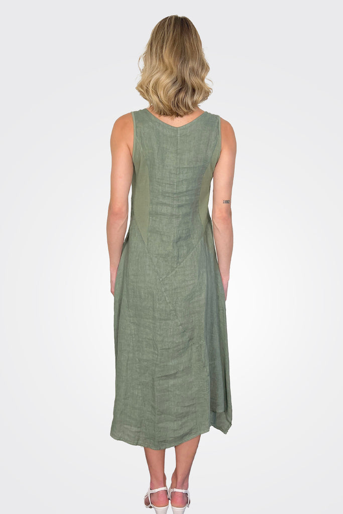 Inizio’s Linen Dress flaunts a great style from Italian linen dressmaker, Inizio. Asym detail across bodice