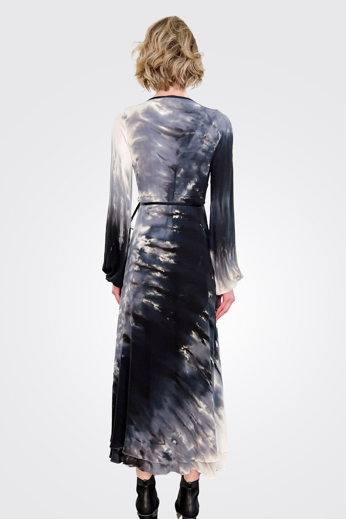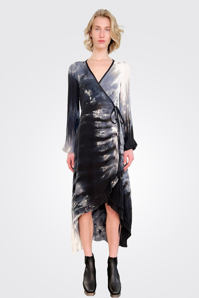Jennifer Long Sleeve Wrap Dress - Sand Black
