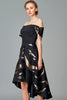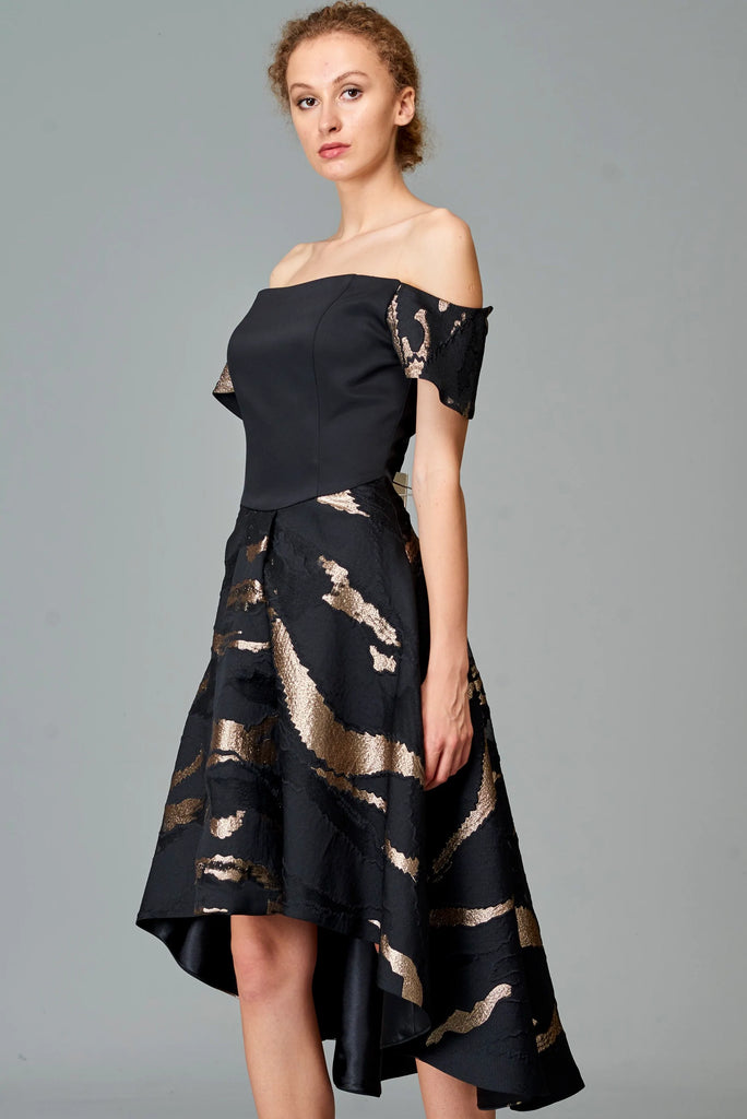Off Shoulder Faille Jacquard Short Dress - Black / Gold