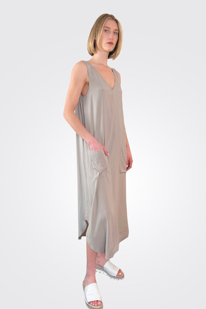 Silk Satin Dress - Vintage Khaki