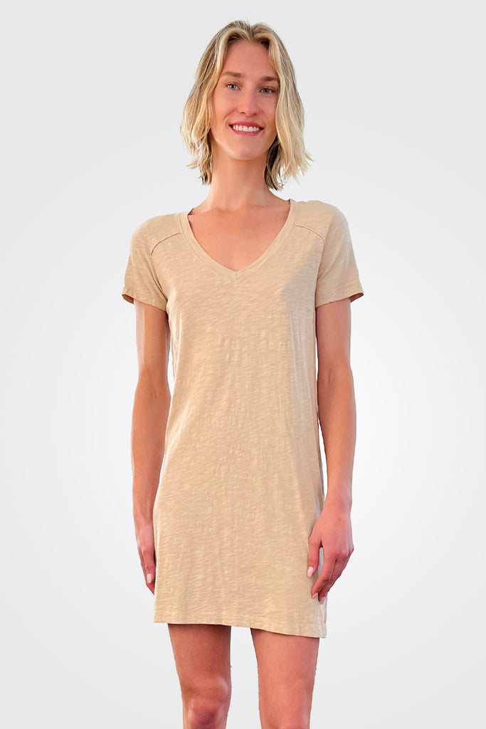 Cool and casual gets no easier than this soft slub dress! Complete the look with sneakers for a sporty casual look or wear it to brunch with cute sandals.*Slubbed Jersey*100% Cotton