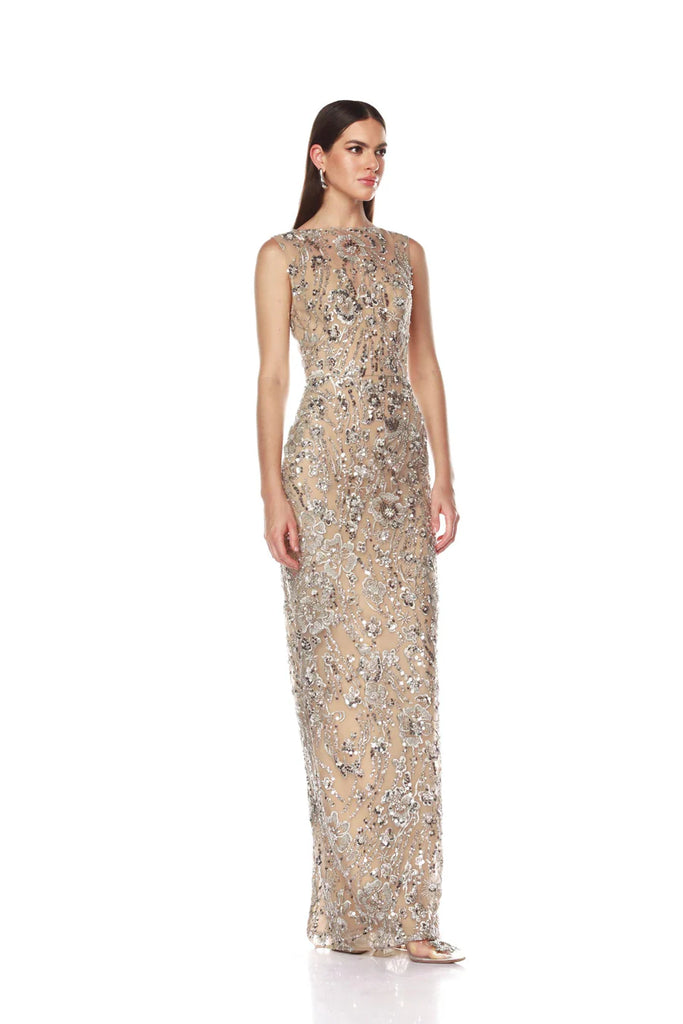 Make an entrance in the Violet Silver Maxi Dress—sleek, shimmering, and show-stopping.