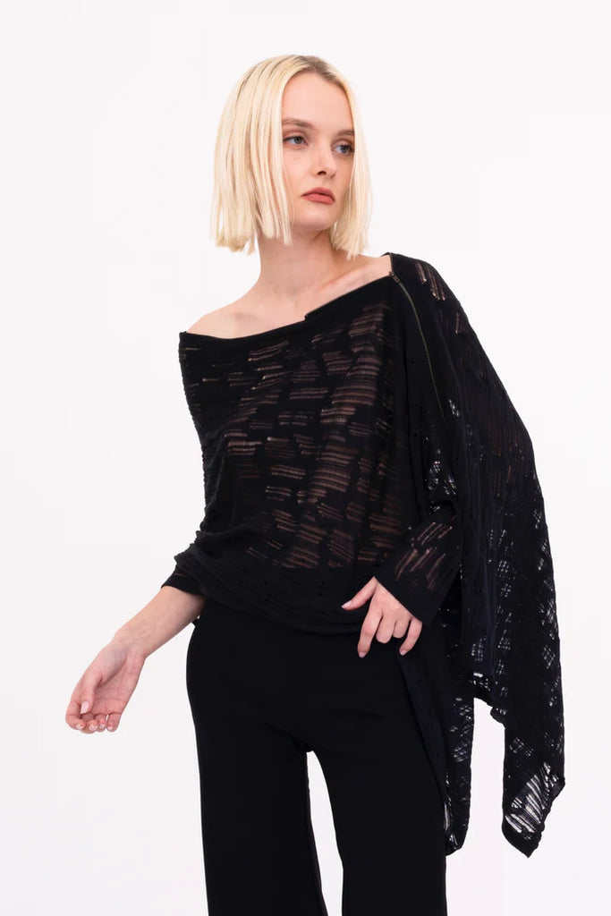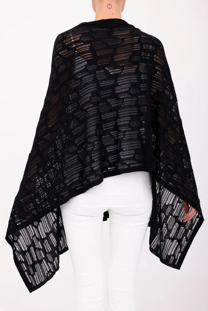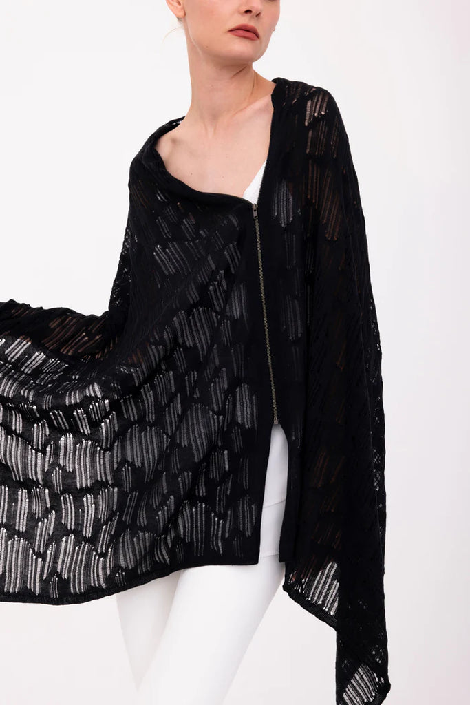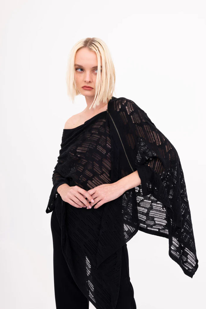 Bombay Distressed Cotton Hemp Zip Poncho - Black