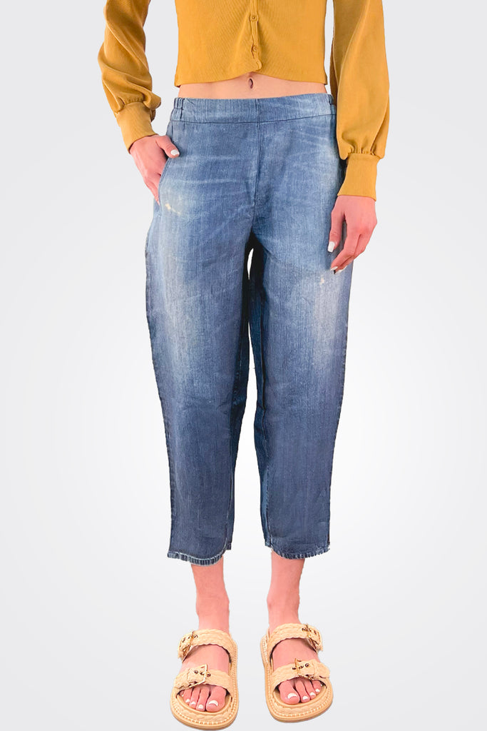 A classic cropped linen pant from Elemente Clemente. This flattering, lightweight, tapered style features an elasticated rear waistband for comfort and side seam pockets - ideal for the Spring/Summer. Made from 100% eco-friendly European linen.