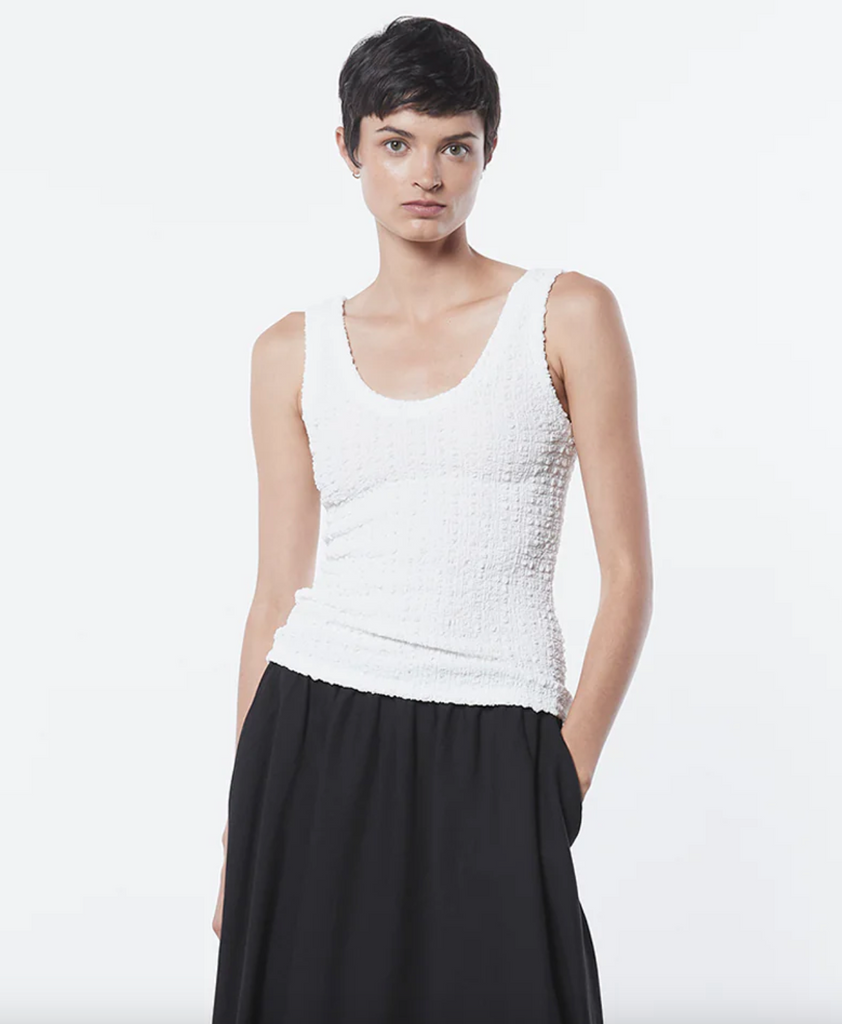 Crafted with a unique delicately expandable texture, the Puckered Tank features a lightweight easy fit with a scoop neckline.