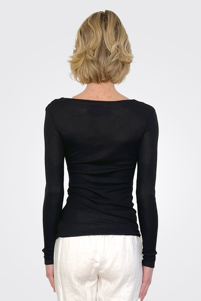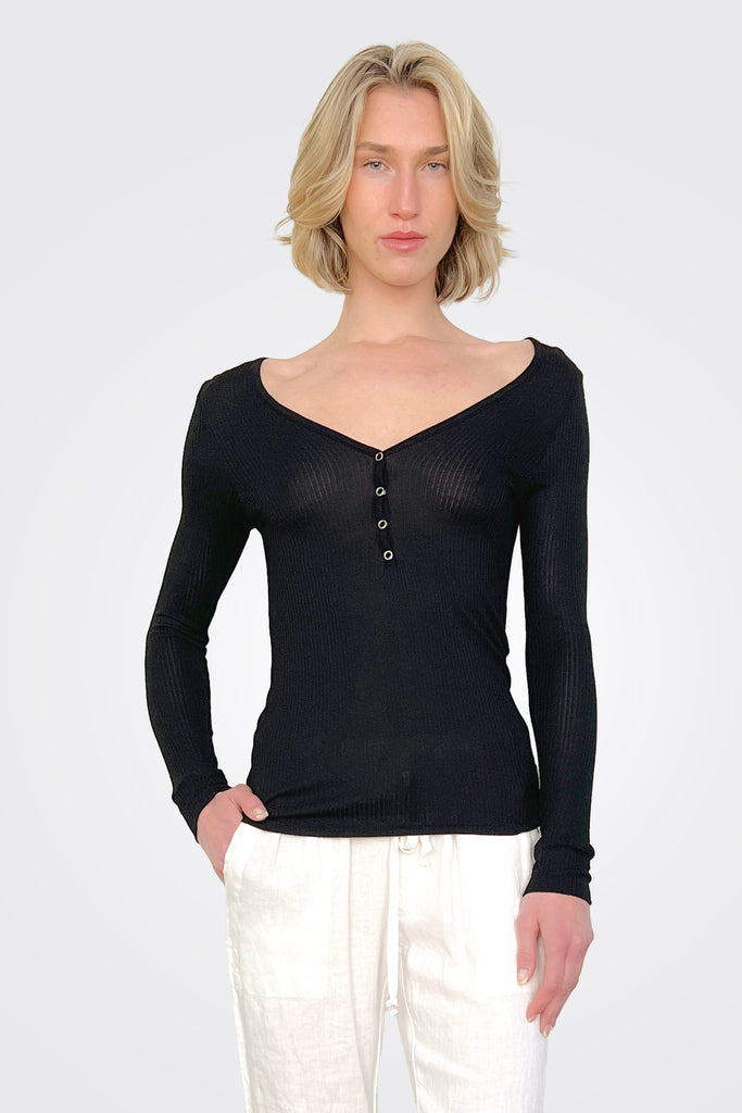 Rib Knit Henley - Black