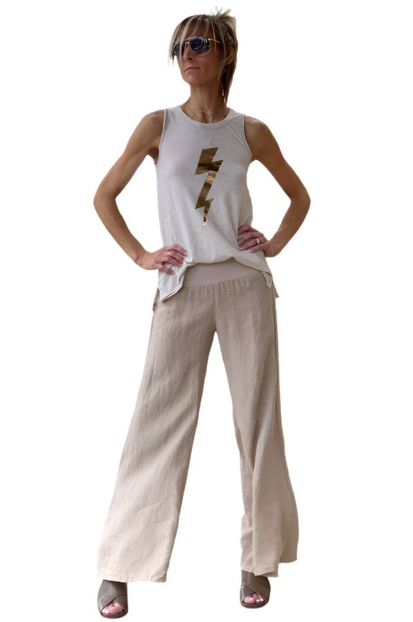 Wide Linen Trousers - Dark Clay