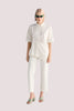 Straight leg trousers.