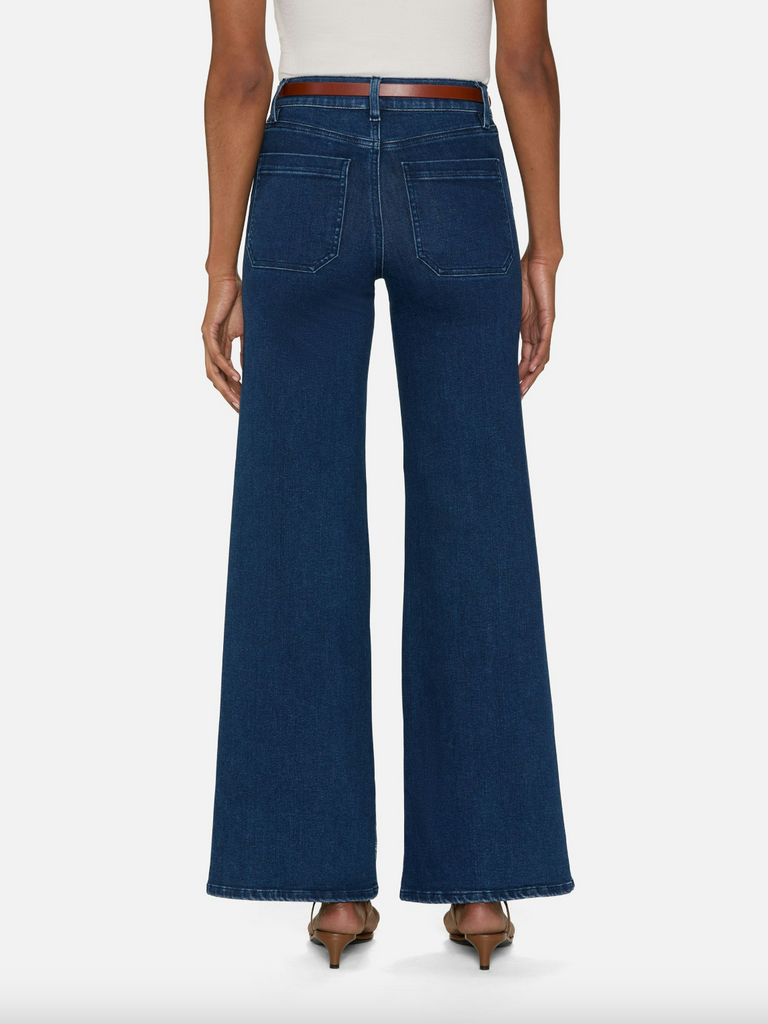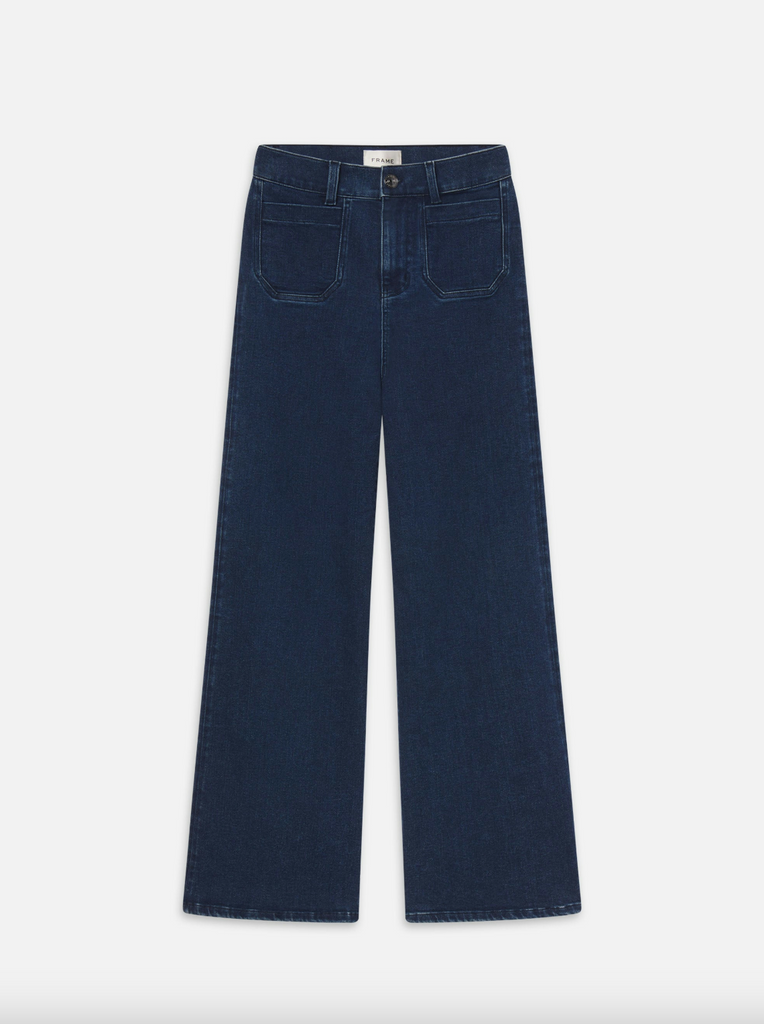 FRAME's best-selling palazzo silhouette, now with chic front pocket details. This pair has the same flattering high rise, fitted hip, and subtle wide-leg flare that hits at the floor. Crafted from a sustainable, ultra stretch cotton blend for soft and comfortable wear.