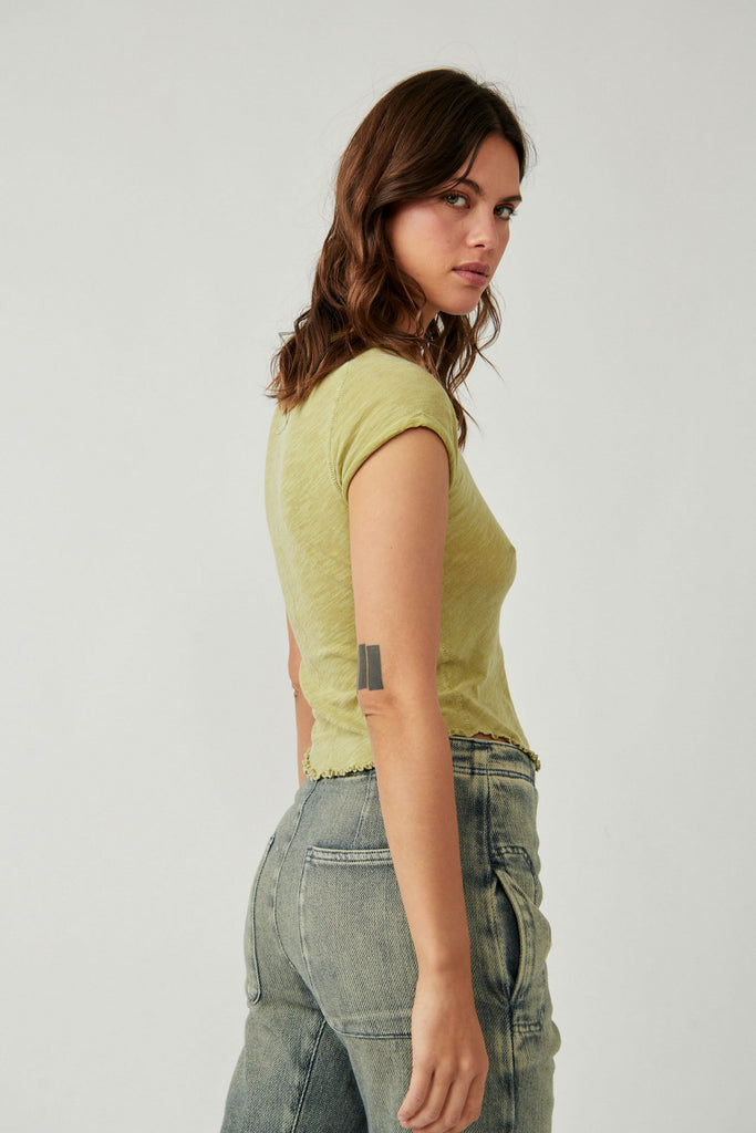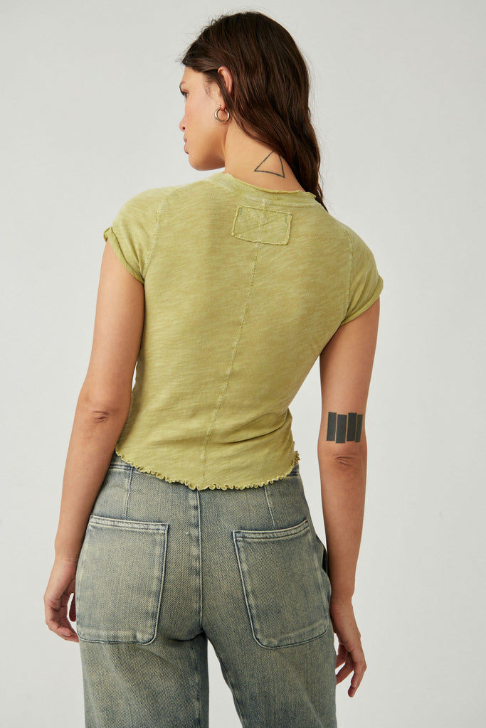 The definition of an effortless essential, this timeless tee is featured in a classic baby silhouette with capped sleeves and raw hemlines for a true lived-in look.