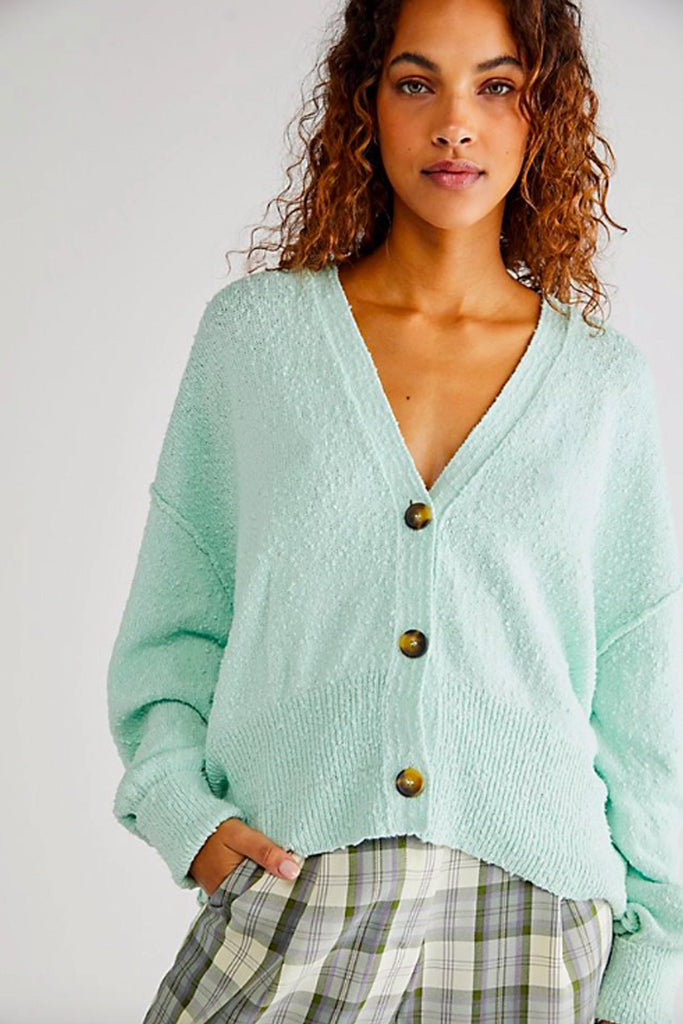 Your new favorite cardigan featured in a soft, textured fabrication and boxy, cropped silhouette with dropped sleeves and exposed seaming for added dimension.