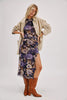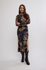 Femme and flattering, this maxi features a printed mesh fabrication and long-sleeve silhouette with gathered waist detailing and an exaggerated slit.
