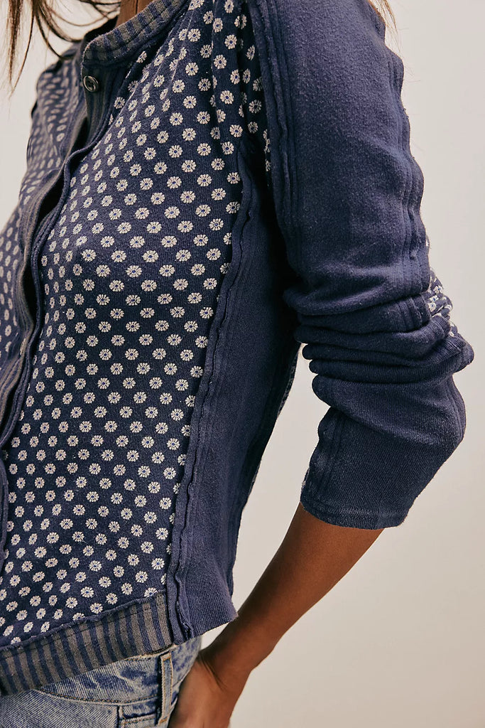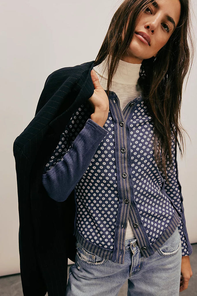 So unique from We The Free collection, this long-sleeve is featured in a mixed print fabrication and slim, relaxed fit with button-front closures and raw seam detailing.