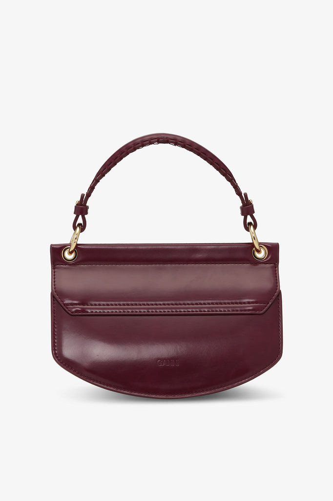 This bag features a structured silhouette, a top handle and an adjustable and removable shoulder strap. The bag has a magnetic closure with the signature GANNI Butterfly clasp in gold-tone, a slip pocket and three main compartments.
