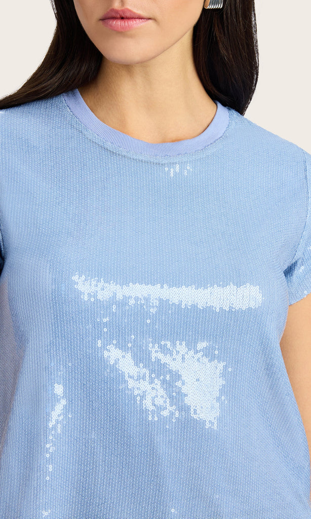 Featuring a classic crewneck silhouette and allover flexible sequins, this fully lined short-sleeve top exudes glamour. Pair it with coordinating sequin pants for a dazzling statement or with jeans for a casual yet polished ensemble.