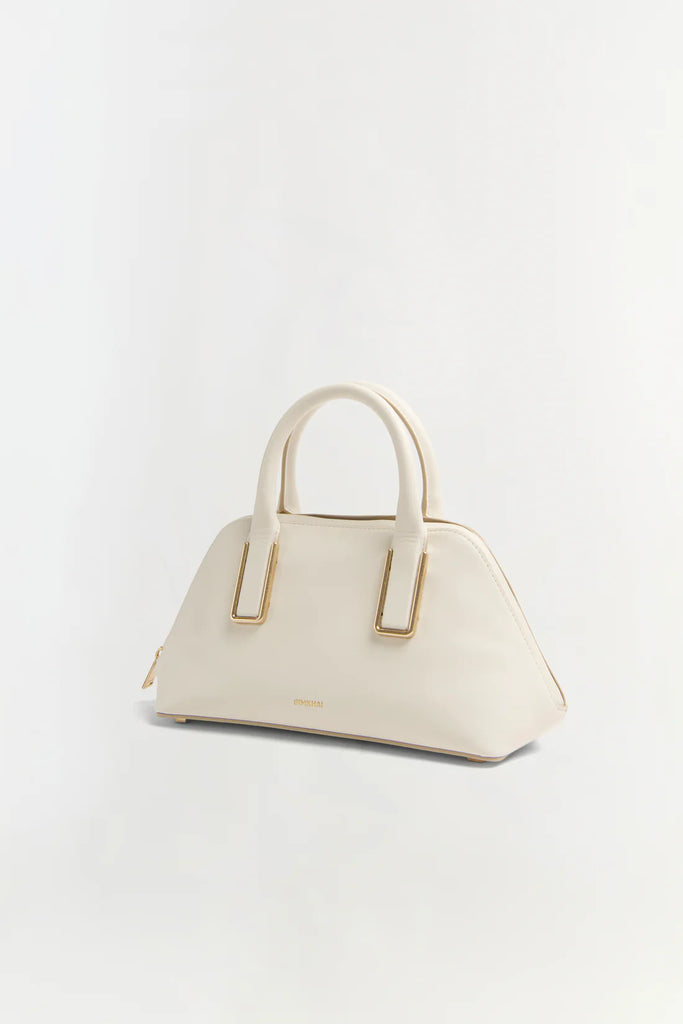 The Wynn Small Leather Top Handle Bag in Alabaster