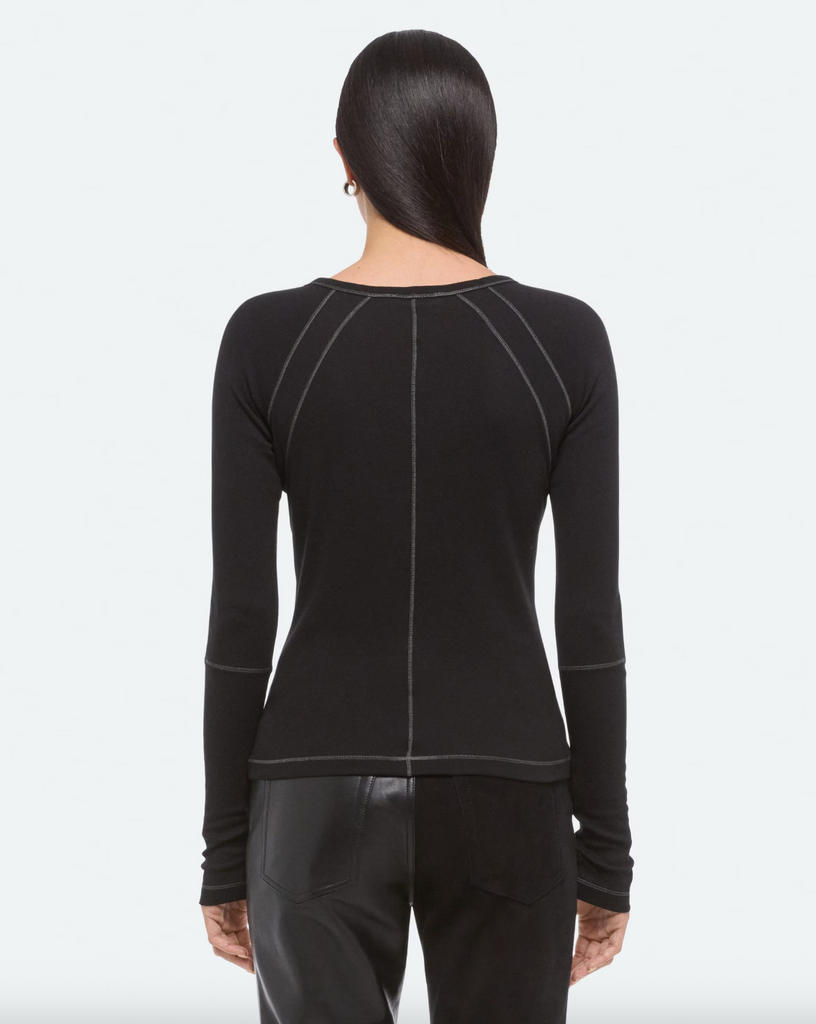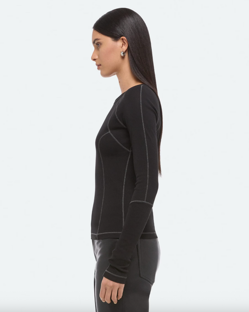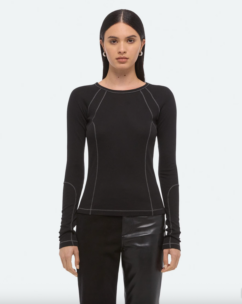 Long-sleeved shirt in a soft rib knit. Contrast stitching highlights the athletic-inspired construction.