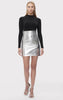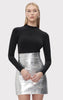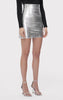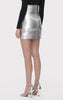 Cut from silver foil leather, the Clara Skirt is part of the Fall '24 collection. With a slightly A-line silhouette and a seamed waistband, the mini creates definition at the waist for a body-contouring fit.