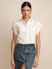 Effortless Style with a Military Edge. Channel cool, laid-back vibes with the Leonora top. Crafted from crisp cotton poplin, this breezy piece features epaulettes on the short sleeves for a subtle nod to military style. It's the perfect blend of relaxed and refined, making it ideal for effortless everyday looks.