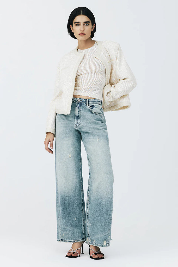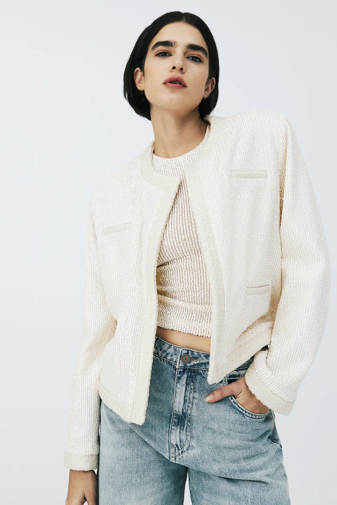 SOFT SEQUIN MIXED TWEED CROPPED BOXY JACKET & DRY CLEAN ONLY