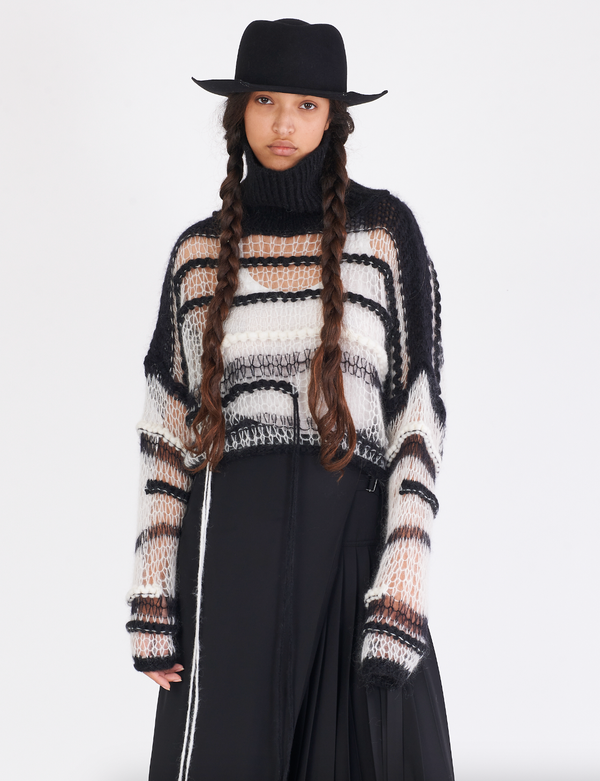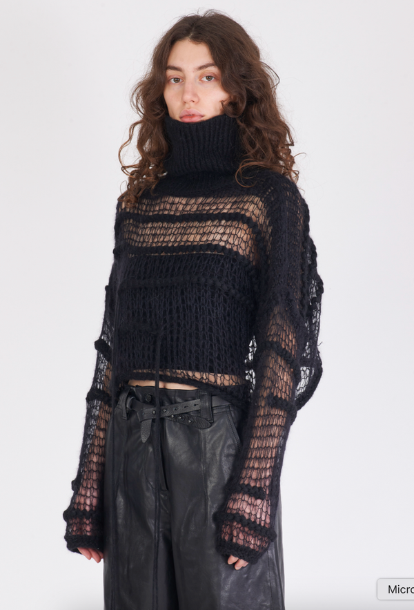 • Alpaca Mohair Sweater: Experience the luxurious feel of this sweater, crafted from a blend of alpaca and mohair fibers. Its soft texture and unique design make it a standout piece in any wardrobe.