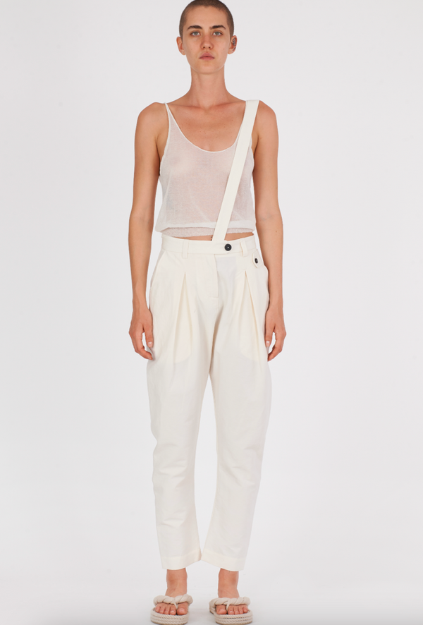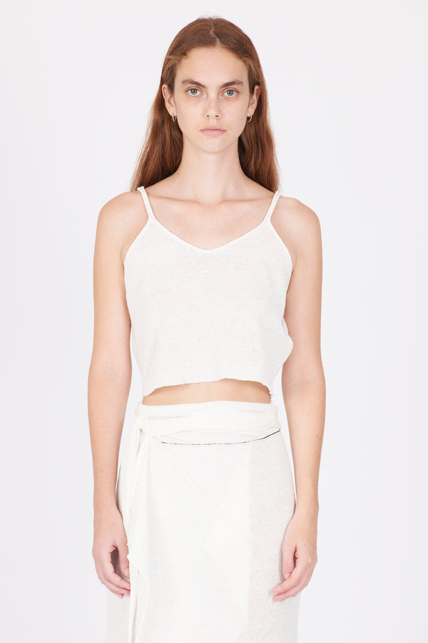 • Linen Cotton Knit Top – White: This top showcases Benenato's signature blend of materials, offering a lightweight and breathable option that drapes beautifully on the body. Its minimalist design makes it versatile for various occasions.
