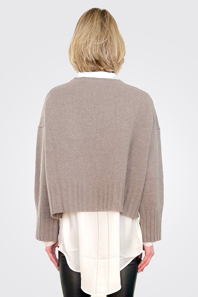 Eco cashmere boxy crew neck knit sweater.Oversize fit50% Cahmere 50% Wool
