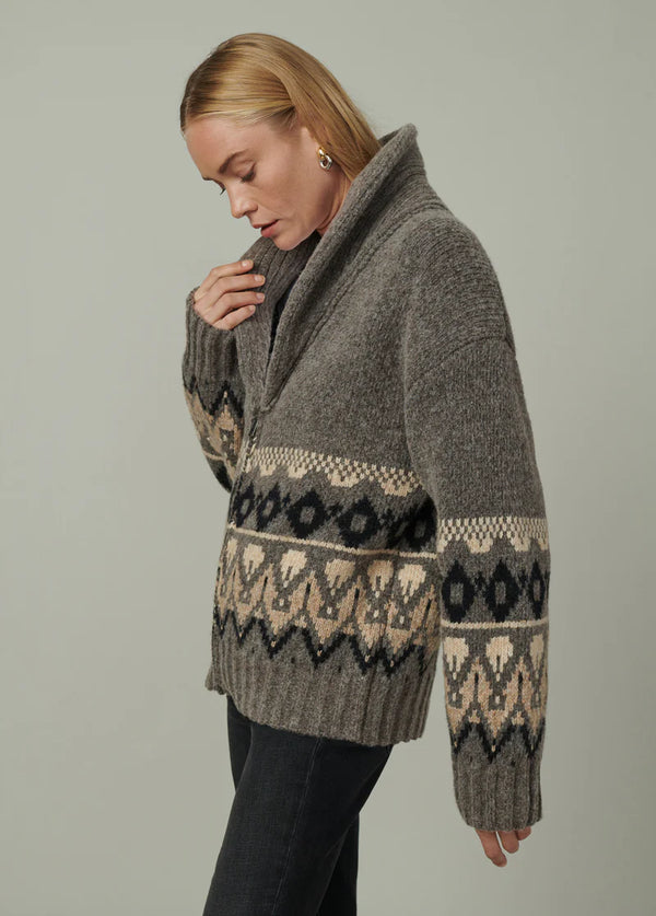 The Inga Fairisle Cardigan - Charcoal Brown