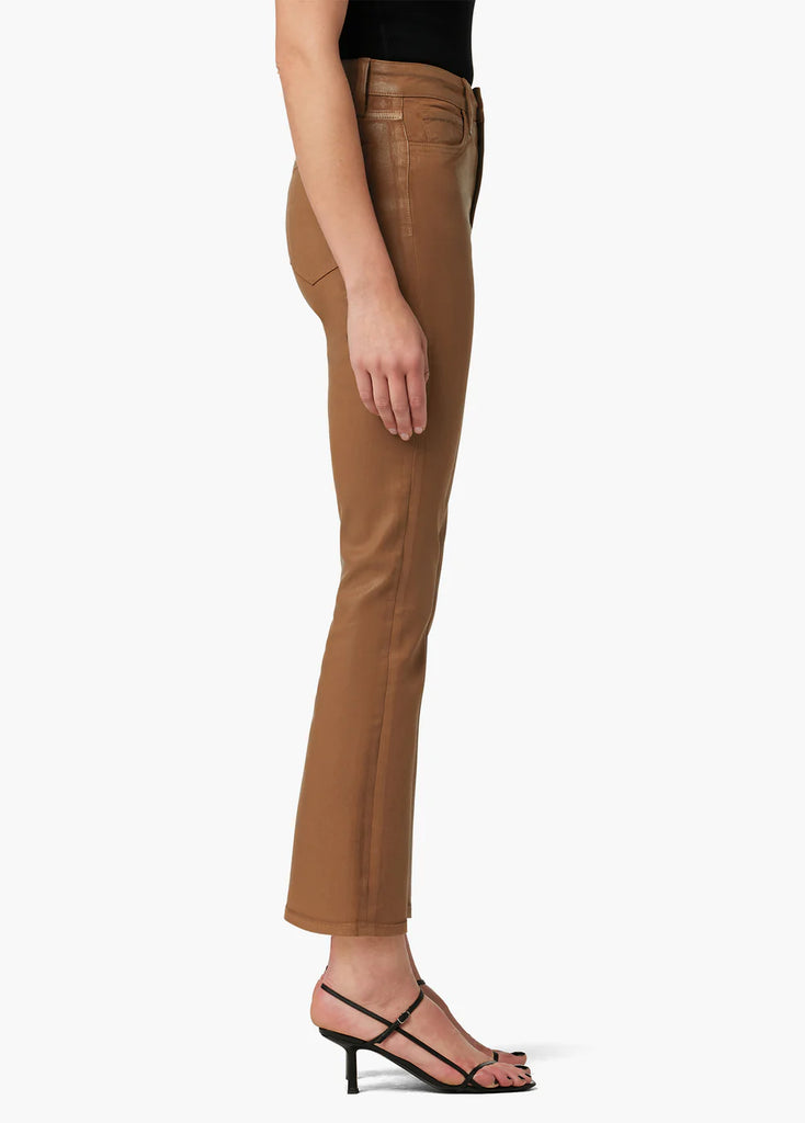 The Callie in Leather Brown is a high-rise cropped bootcut jean that has a super amount of comfortable stretch. The denim has been overdyed to a soft camel color and coated to give these pants some subtle sheen.9 1/4" RISE26 1/2" INSEAM