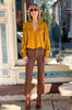 The Callie in 'Cinnamon' is a high-rise cropped bootcut jean that’s been garment-dyed to rust, coated and pressed for a chic finish. The five-pocket pair comes in Vintage Stretch denim that has a slightly heftier weight and authentic weave texture.