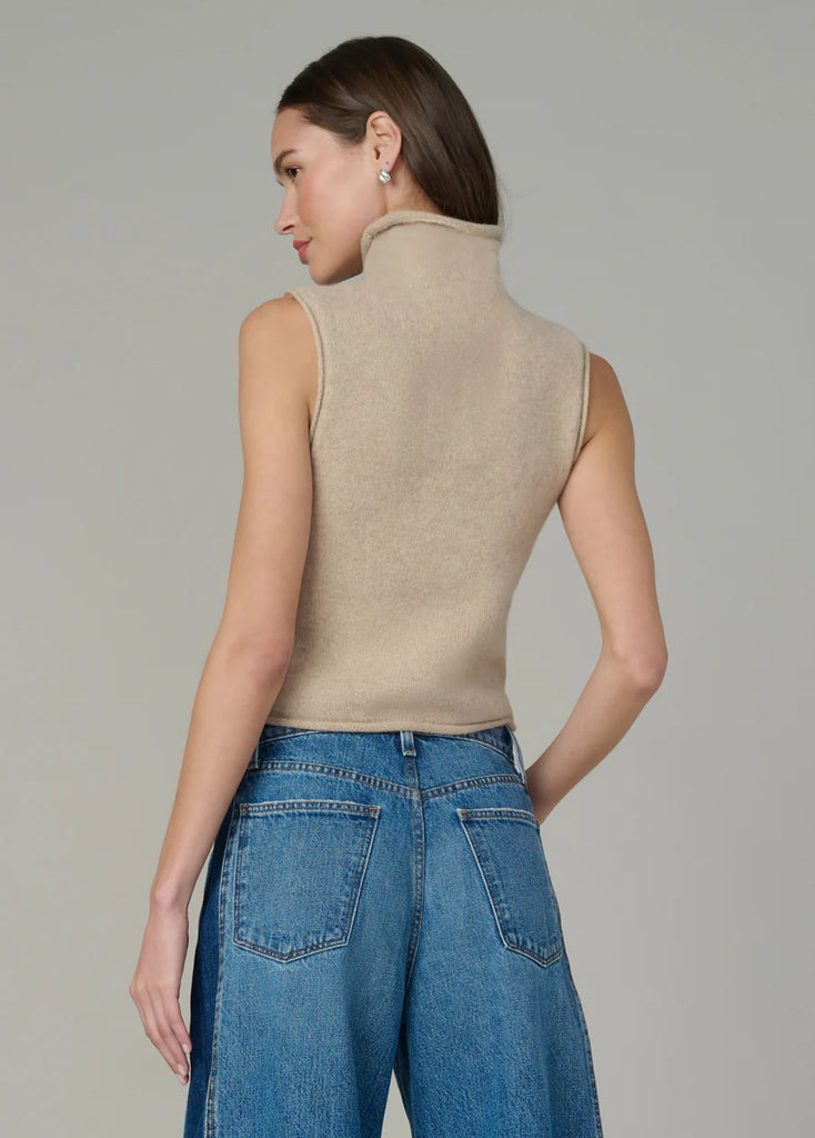 The perfect transition piece: a chic funnel neck, sleeveless sweater with an easy-fitting body in a luxe natural-fiber yarn.