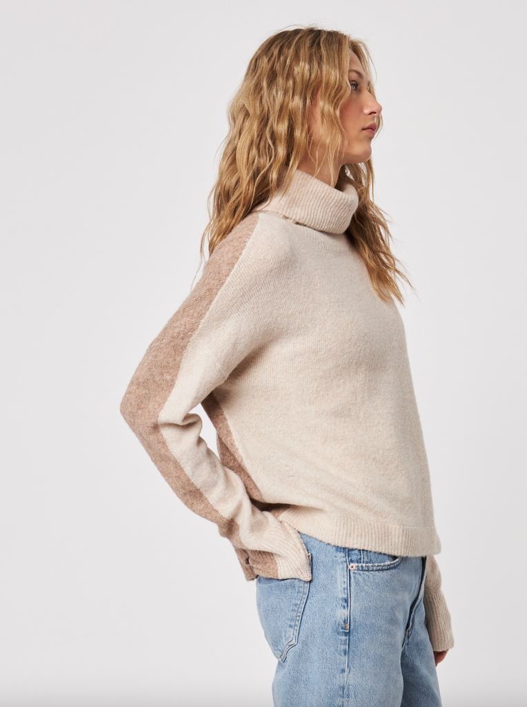 Snuggle up in the super cozy John & Jenn Tino Sweater in Mink Block. This playful turtleneck features a creamy block print that adds a touch of charm to your cold-weather wardrobe. Made by a proud Canadian brand, it’s perfect for staying warm with style all season long!