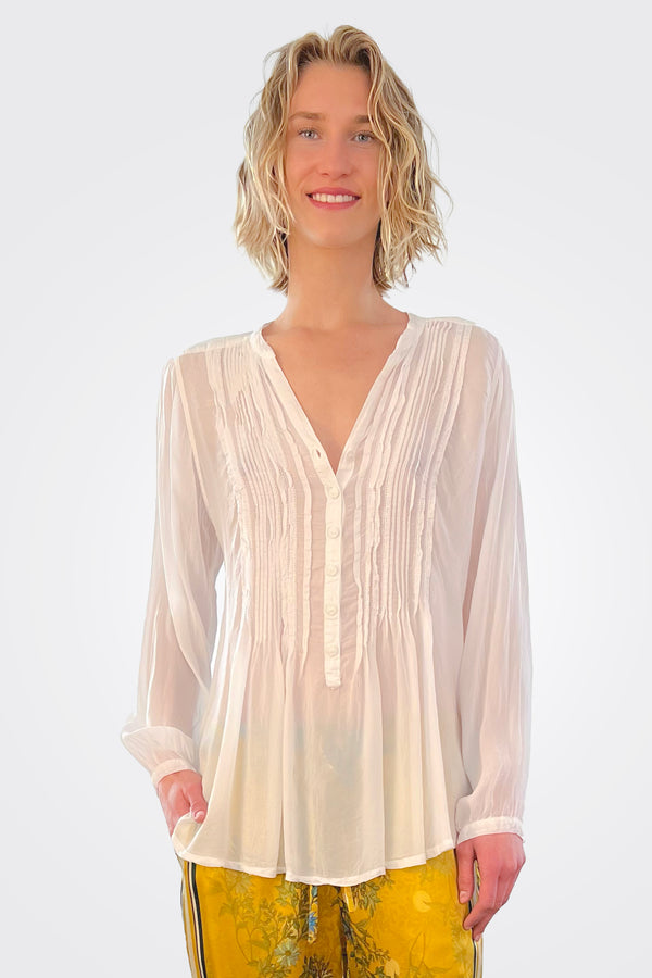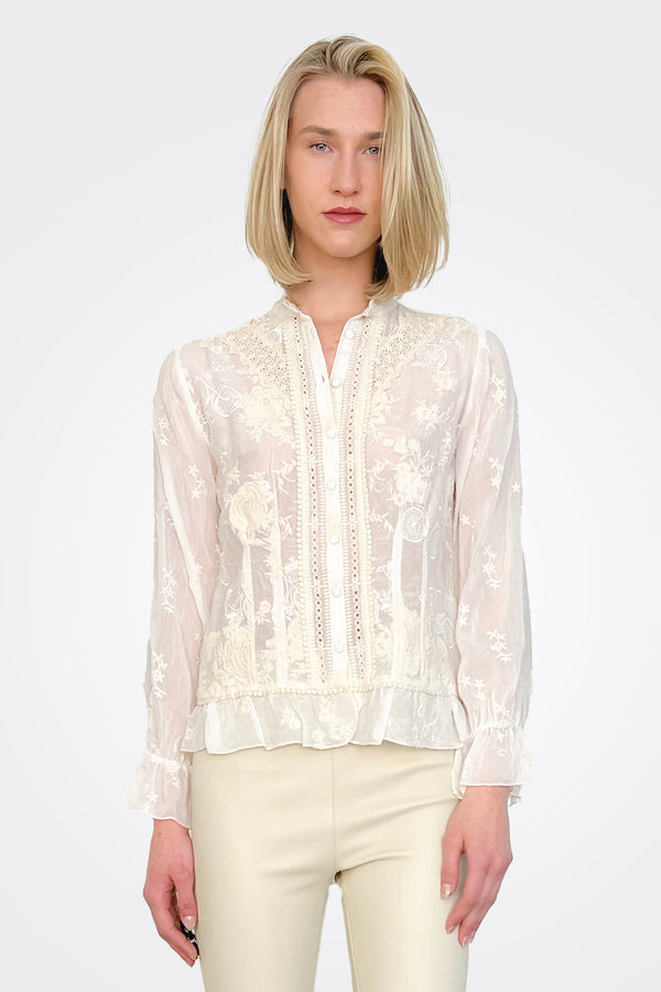 • Embroidered Blouses & Tops — Dramatic sleeves, peasant details, scalloped hems, textured embroideries that amplify simple bottoms.