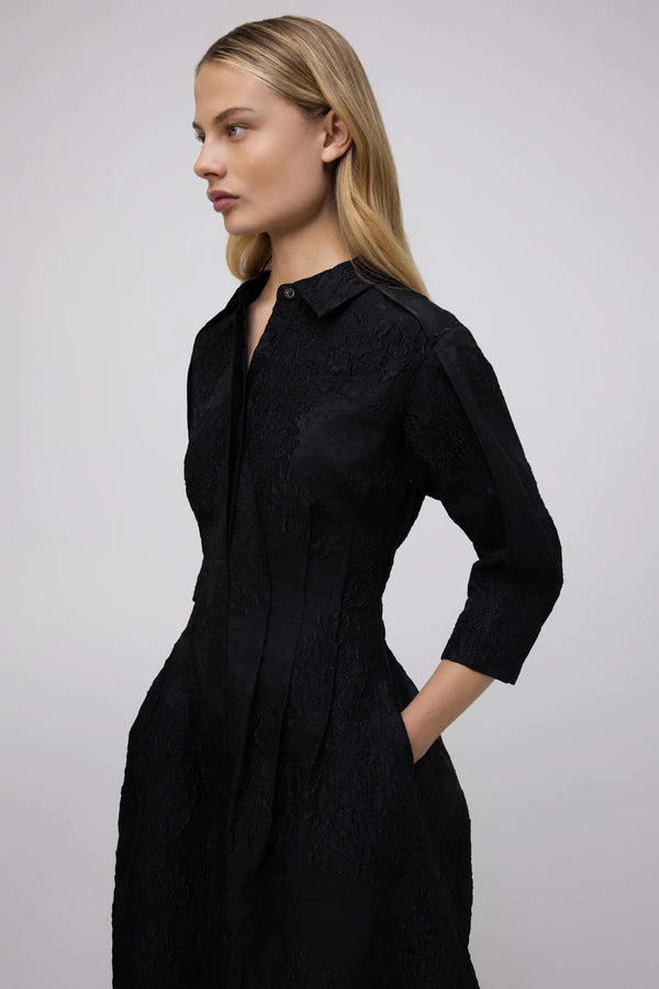 Every piece highlights the brand’s signature tension between strength and sensuality. Think draped Angeline Draped Midi Dress in Dried Pineapple, engineered with structured dimension and sleek cocktail crepe detailing, or the Cillian Straight Leg Pant, tailoring that balances relaxed ease with sculptural precision. Soft Theodora Bustier Tops, versatile swimwear, and drawn silhouettes create a cohesive wardrobe built around architectural fashion.