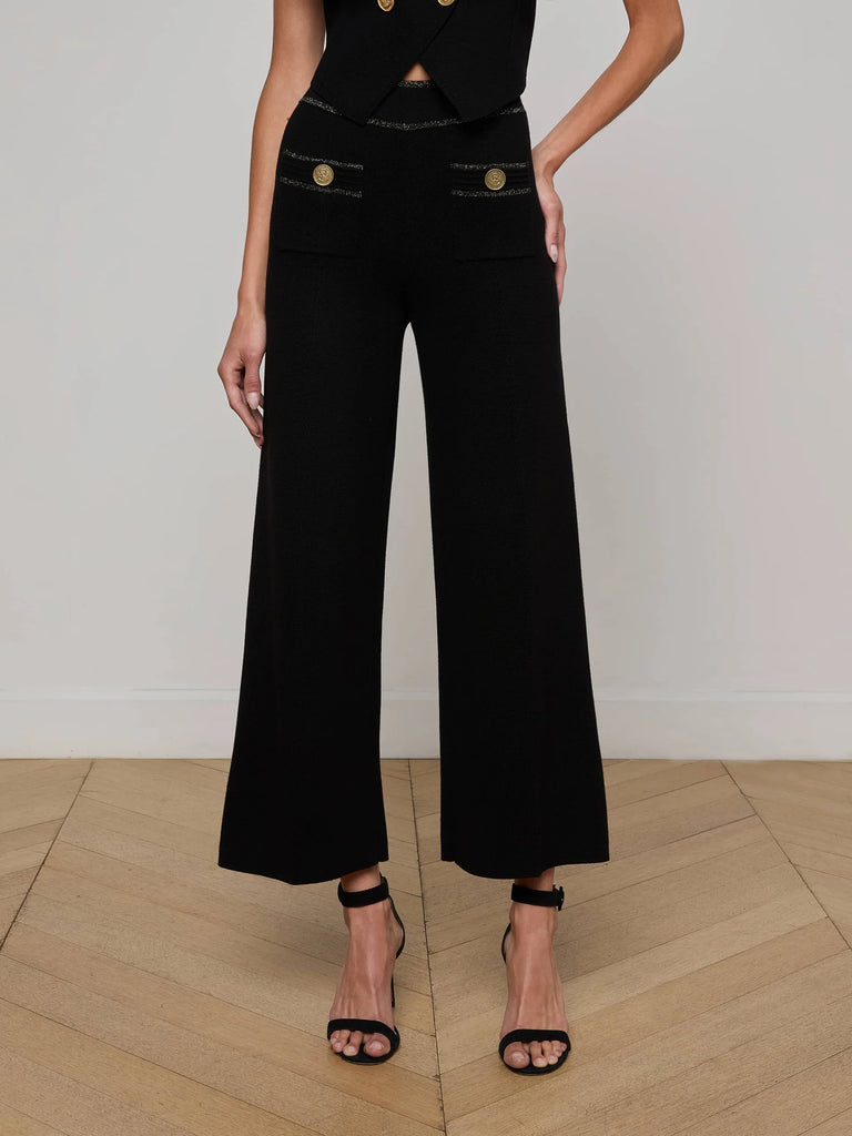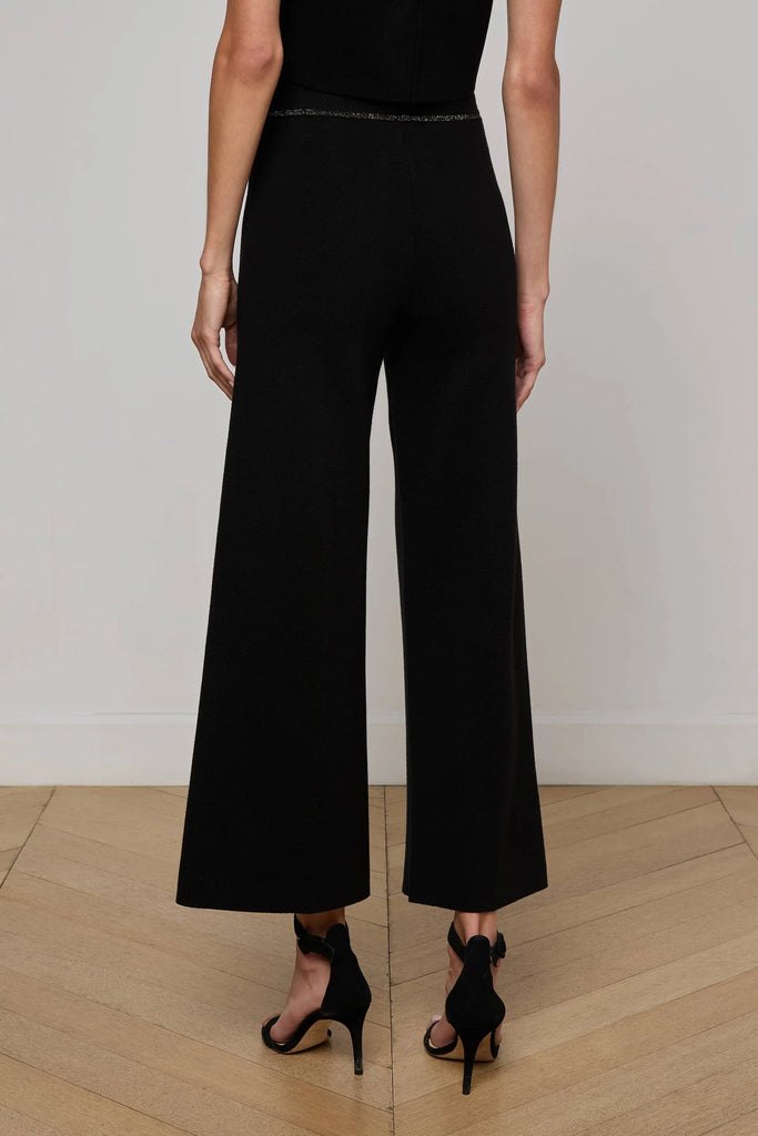 From the airport to the office to evening, the Madrid offers instant polish without compromising on comfort. Embrace the power of the knit pant, now in timeless black with subtle lurex trim.