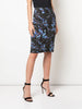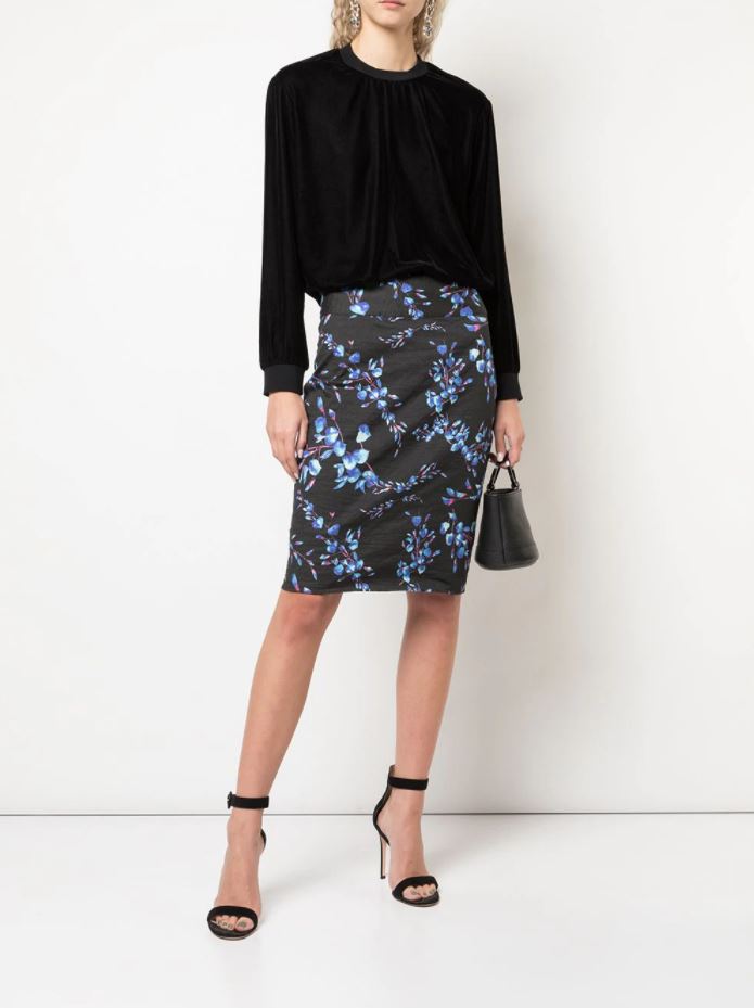 Black cotton blend Blossom skirt from Nicole Miller featuring a high waist, a concealed zip fastening, a fitted silhouette and a mid-length.