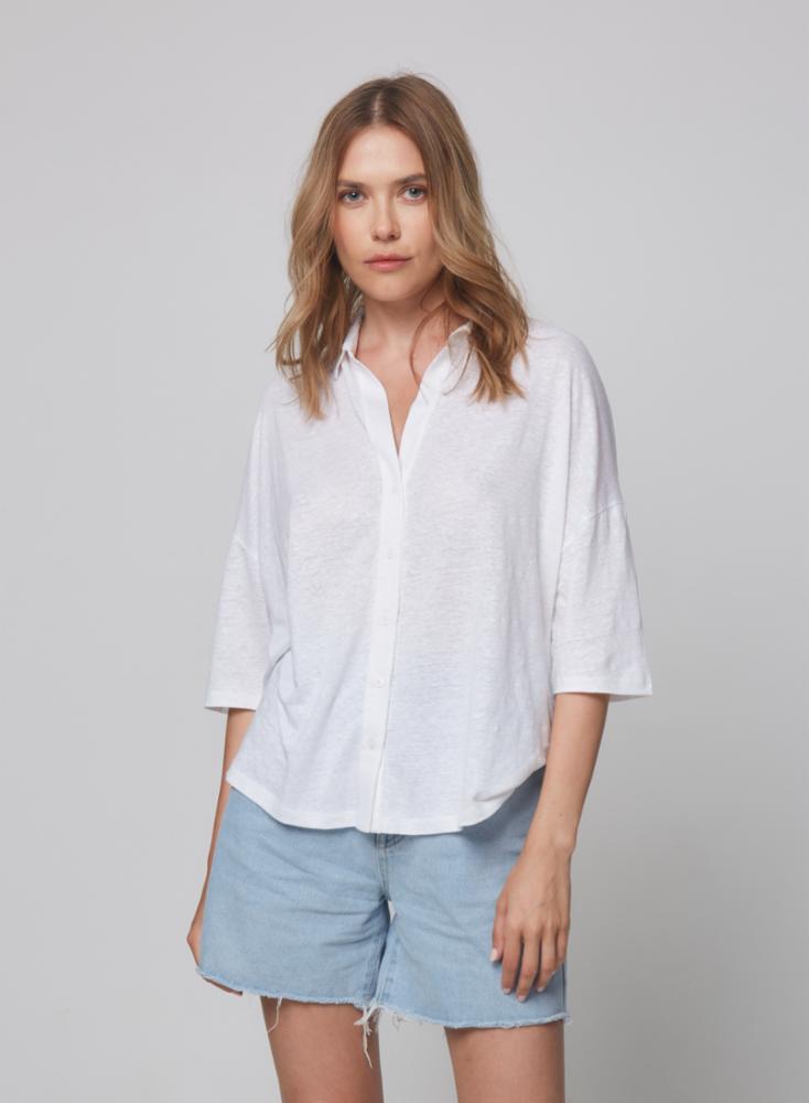 Stretch Linen Raglan Sleeve Shirt - Blanc