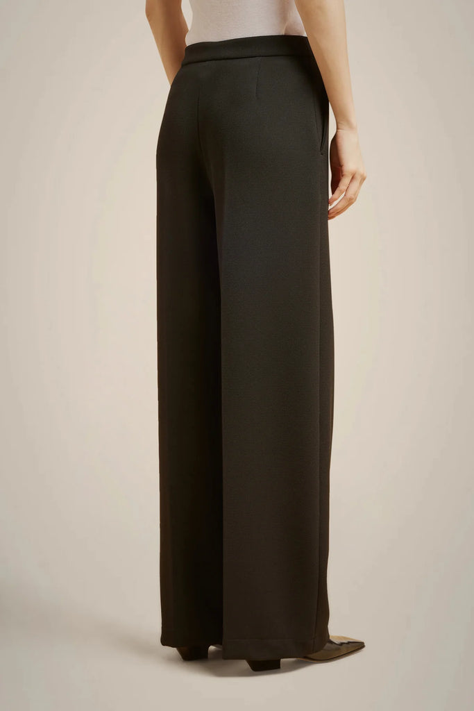 Textured crepe straight-leg trousers, front closure with zipper and button, French pockets, waistband, back darts.