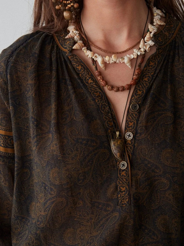 The Tina Blouse captures a raw, honest edge. Crafted from viscose, it features contrasting details on the upper sleeves and cuffs that elevate its unique design.