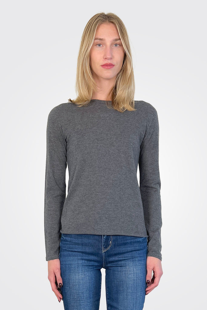 Cashmere Long Sleeve Crewneck - Anthracite Chine