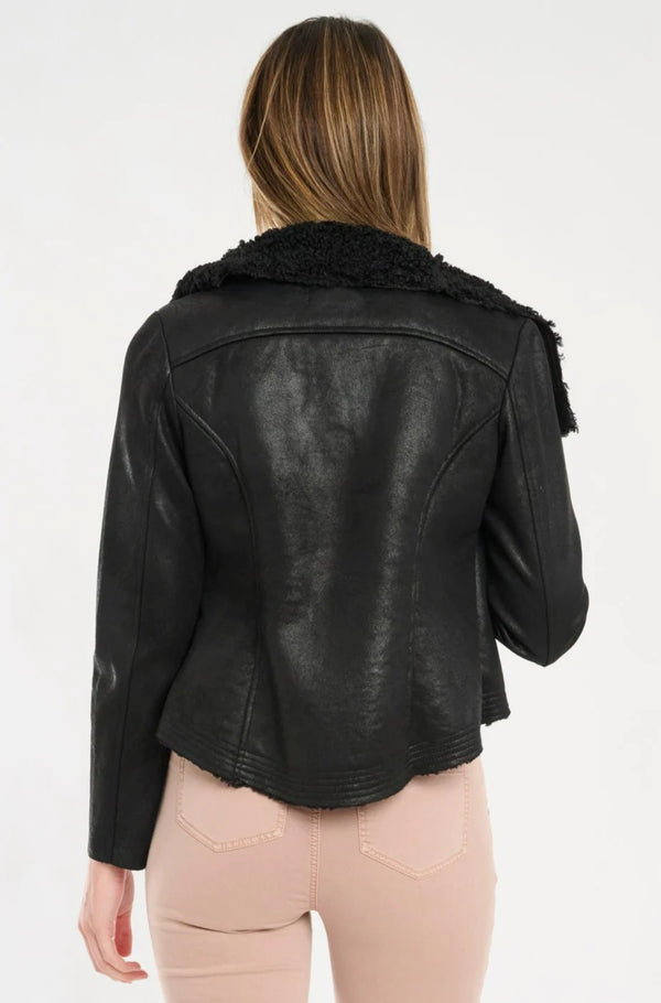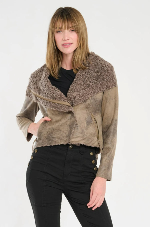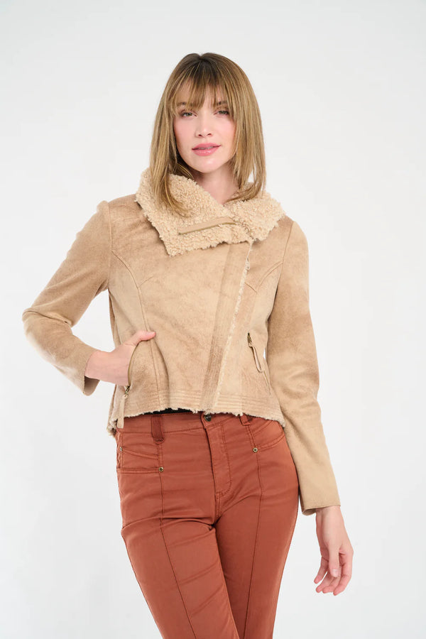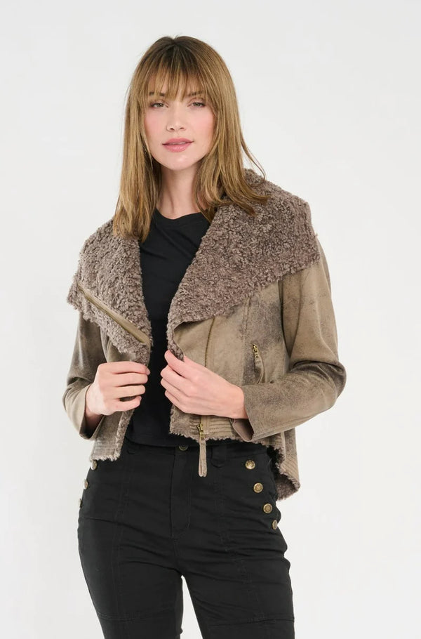 Osha Faux Shearling Suede Biker Jacket - Buff